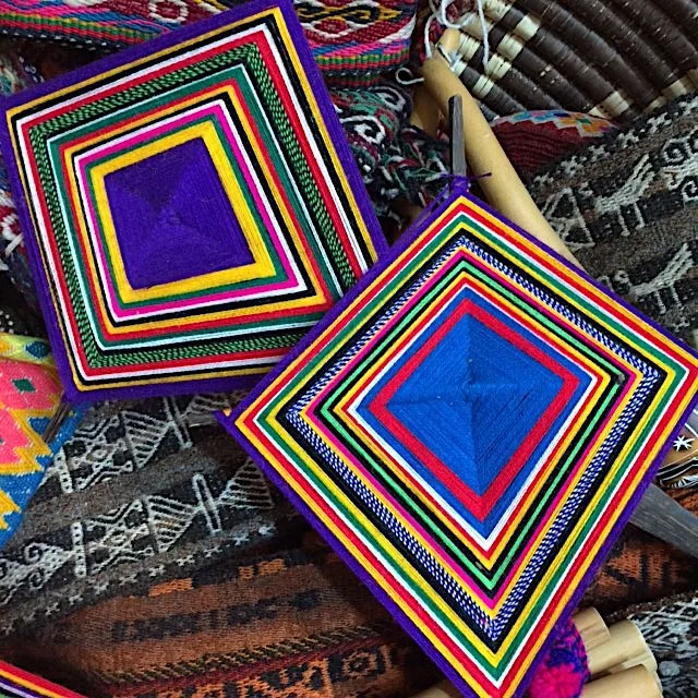 Ojos de Dios are also known as Godseyes. Godesyes were traditionally made in Mexico and by the Pueblo people in New Mexico as a celebration, blessing or to mark a trail they walked on. The spiritual eye of the Ojo de Dios is thought by some believers to have the power to see and understand things unknown to the physical eye. In Mexico The four points represent the elemental processes: earth, fire, air, and water.